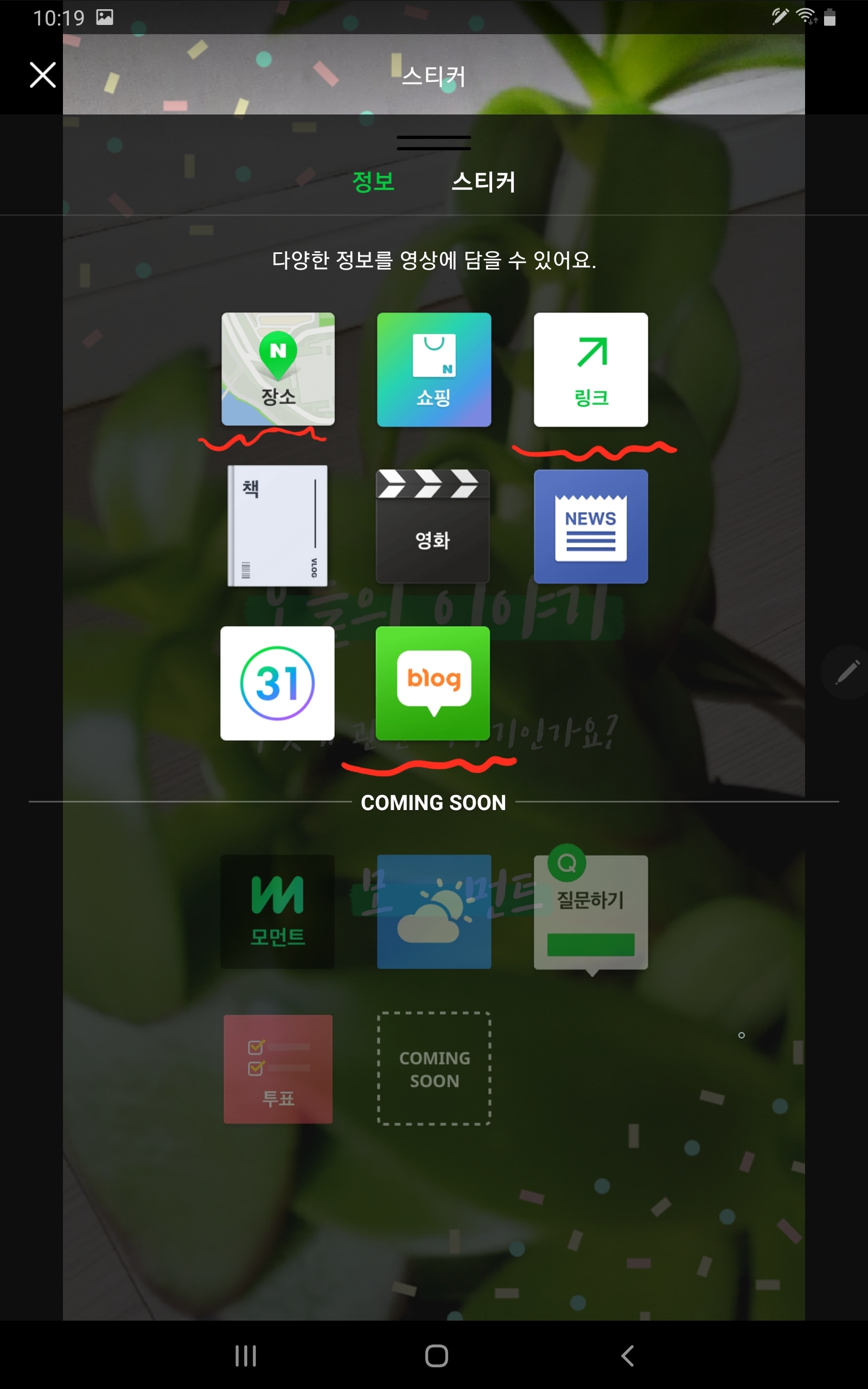 정보나 스티커 방식을 이용해서 내가찍은 영상에 네이버 지도 혹은 링크를 첨부할 수 있게 되었네요