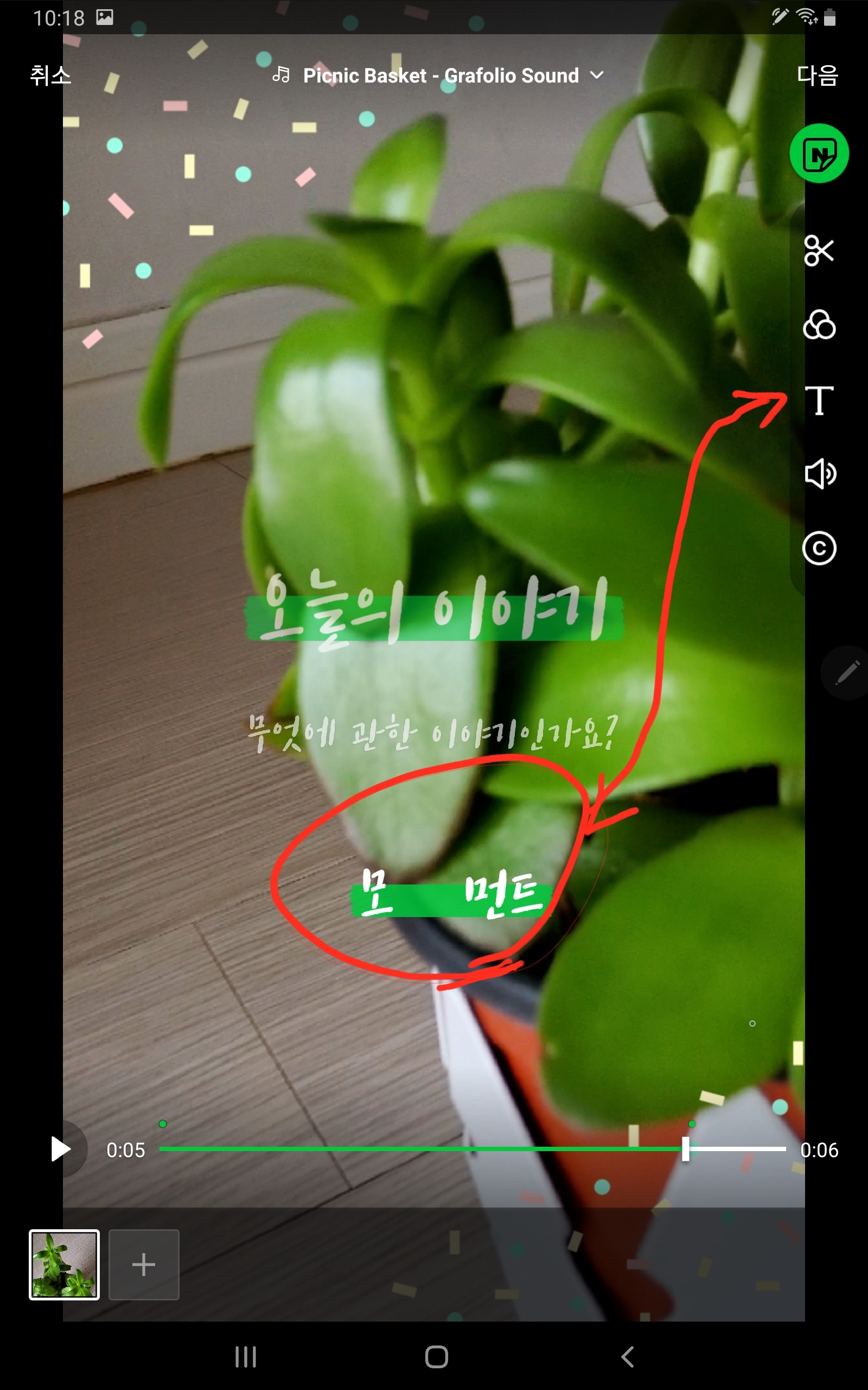 요렇게 내가 찍은 영상에 어울리는 사운드와 폰트효과를 선택하시면 되네요