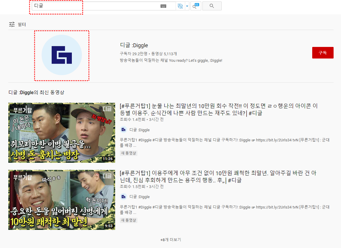 검색창에 운영하시는 채널의 이름을 검색하고 난 후 서치 리스팅에서 아이콘을 클릭 하시면 해당 채널 주소가 나오게 됩니다.