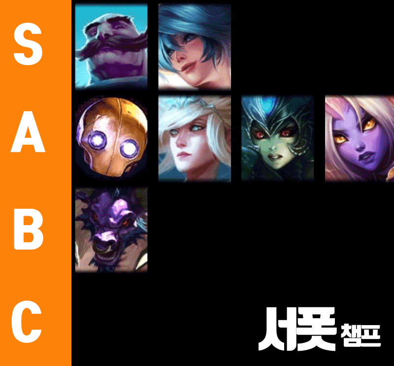 아직까지는 서폿중에 강력한 티어를 보여주는 챔프가 없는 상태라서 S등급은 제외 시켰습니다.
